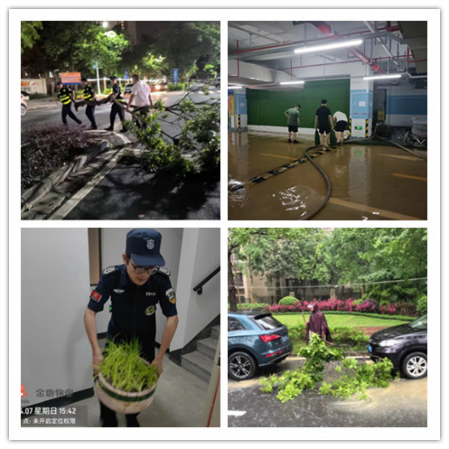 在启动防暴雨内涝三级应急响应以来,我司领导干部切实扛稳责任,靠前指挥调度。各项目立即响应、主动履职,有效发挥战斗堡垒作用。各保安队冲锋在防汛一线,奋战在排险现场,冒雨动态排查、处理险情,**力度保障各服务项目生命财产安全。以下是部分服务项目的防汛工作片段: